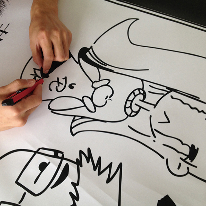 由于操作简单,被广泛用于广告领域,首先按要求用电脑制作好图稿,用电脑刻字机输出,在即时贴上刻出需要的图案后用转移膜将图案转移到最终的面板上即可(如玻璃,压克力,展示牌,金属板等光滑板面)。