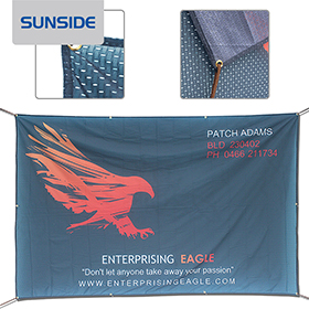 轻量化安装:相比传统喷绘布减重最高达40%,搭配弹性边绳设计,便于快速拉伸固定,大幅节省施工时间与人力成本。