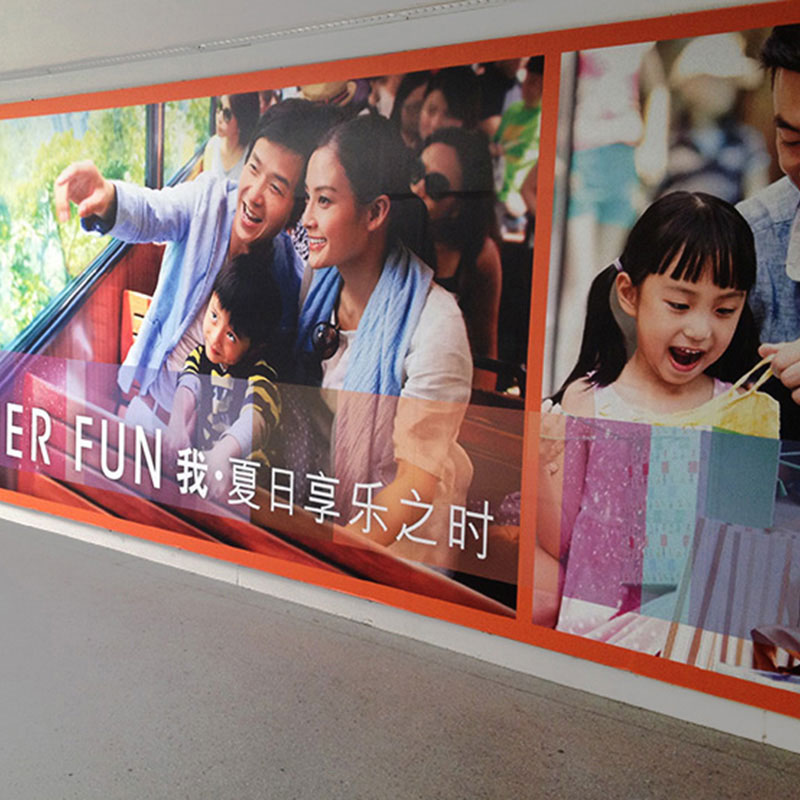 用途:不干胶贴纸,可以贴于各种物料表面,但不容易去除胶渍,是低端的海报解决方案。