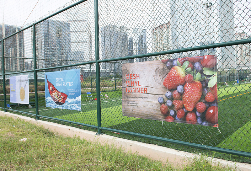 这些户外标识非常适合在没有坚固支撑的地方展示,如护栏、建筑物和运动场等等,它不容易被强风撕裂。它们还可以作为建筑工地的临时覆盖,同时宣传你的品牌。
