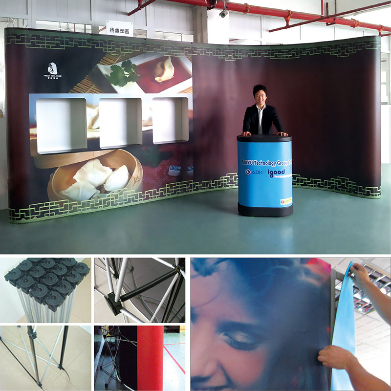 深圳生彩,专业拉网展架加工厂,可以定制各种异形拉网展架,生产直角型拉网展架,组合式拉网展架,