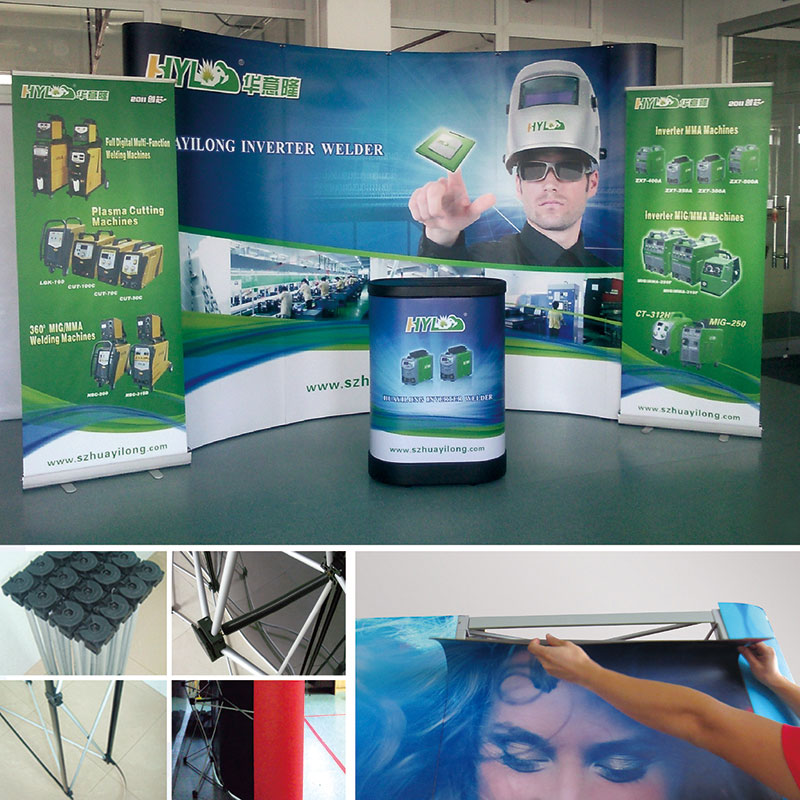 深圳生彩广告,专业拉网展架工厂。拉网展架由管件和连接件组成,可以伸缩,方便携带;
