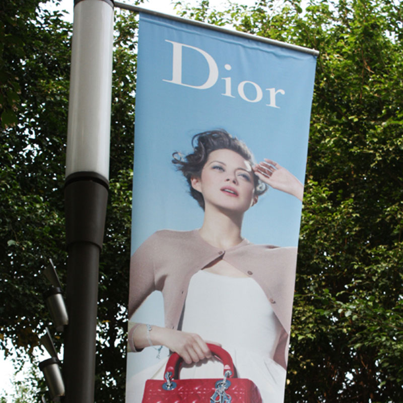 应用:马路灯杆旗,街灯路旗,商场大厅双面悬挂,卖场活动吊旗,商业促销背景布,商业展会宣传等。